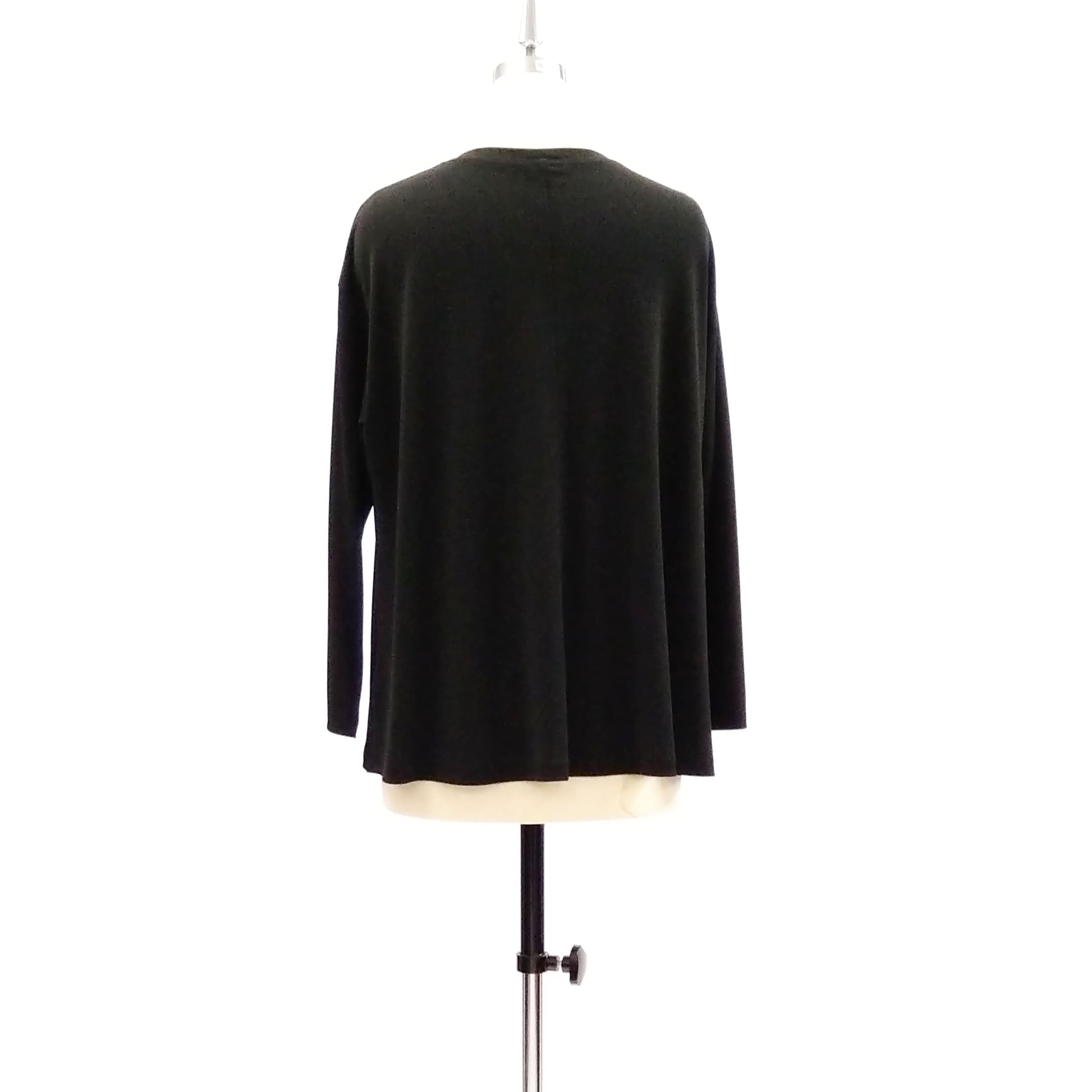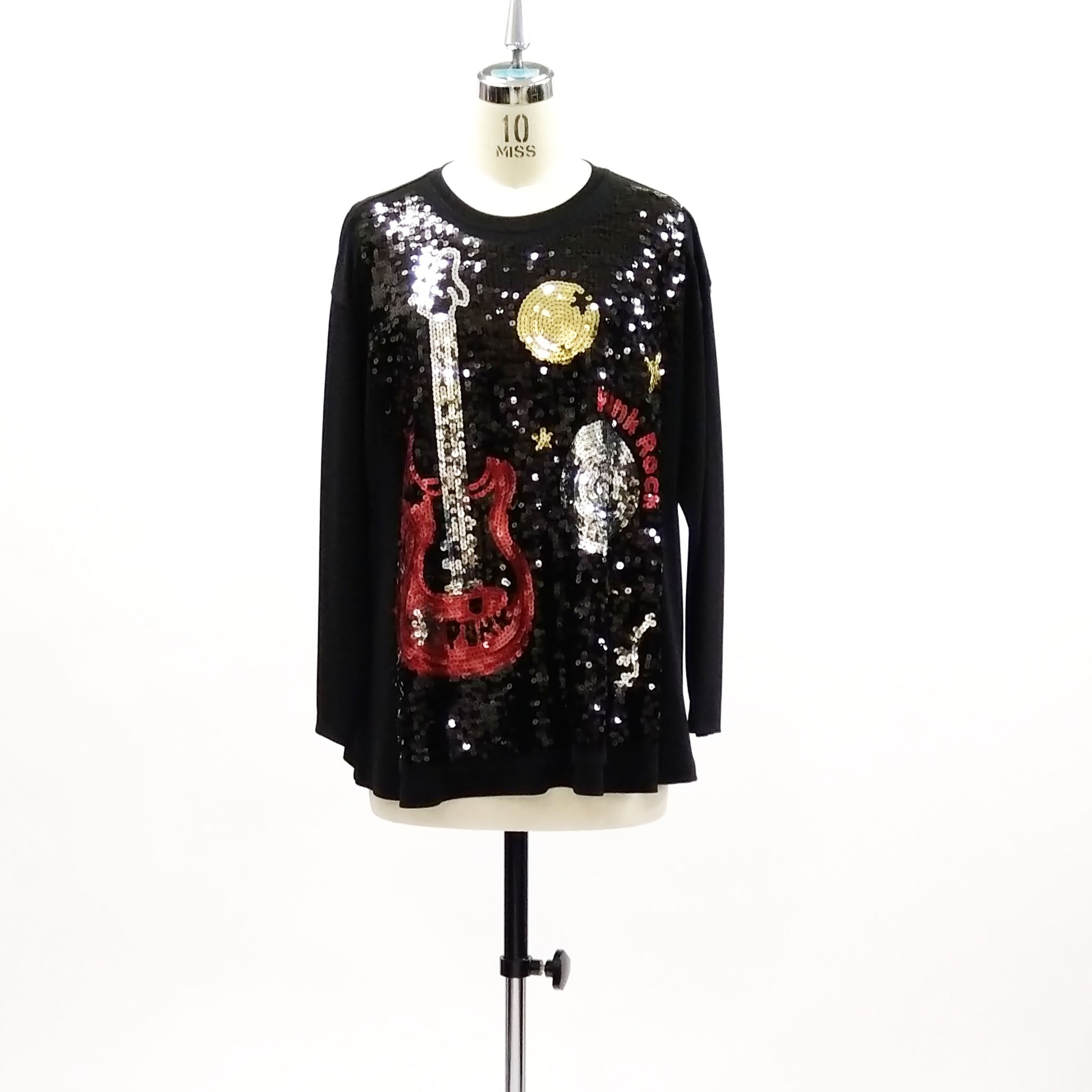定番のベアスムースに少し肩が落ちるドルマンスリーブ風に仕上げた丸首Tシャツ。スタイルはゆったり着れる感じのTシャツですが、前全面にスパンコールで描かれた個性あふれる刺繍がTOKUKOならではの製品に仕上げられています。