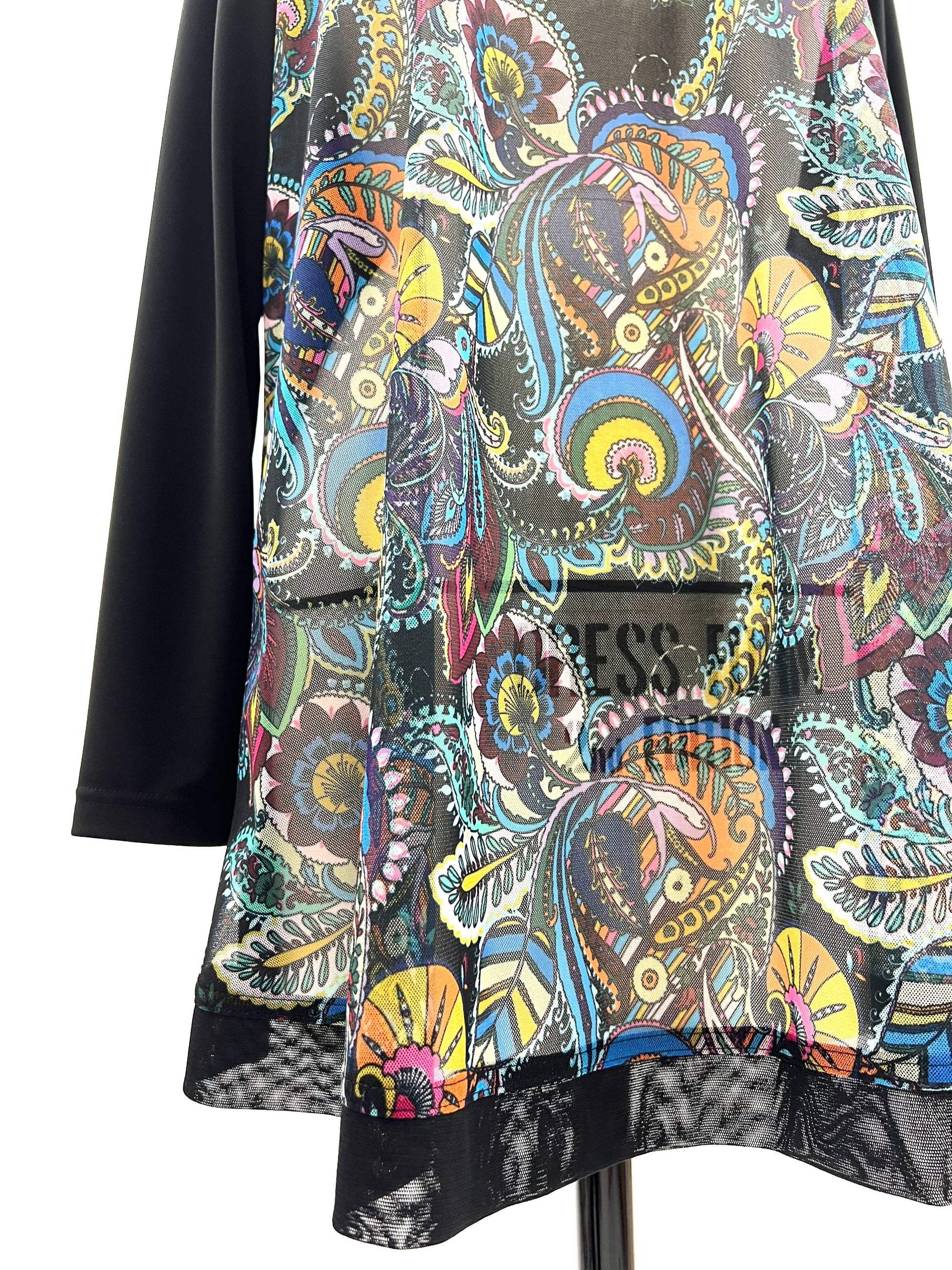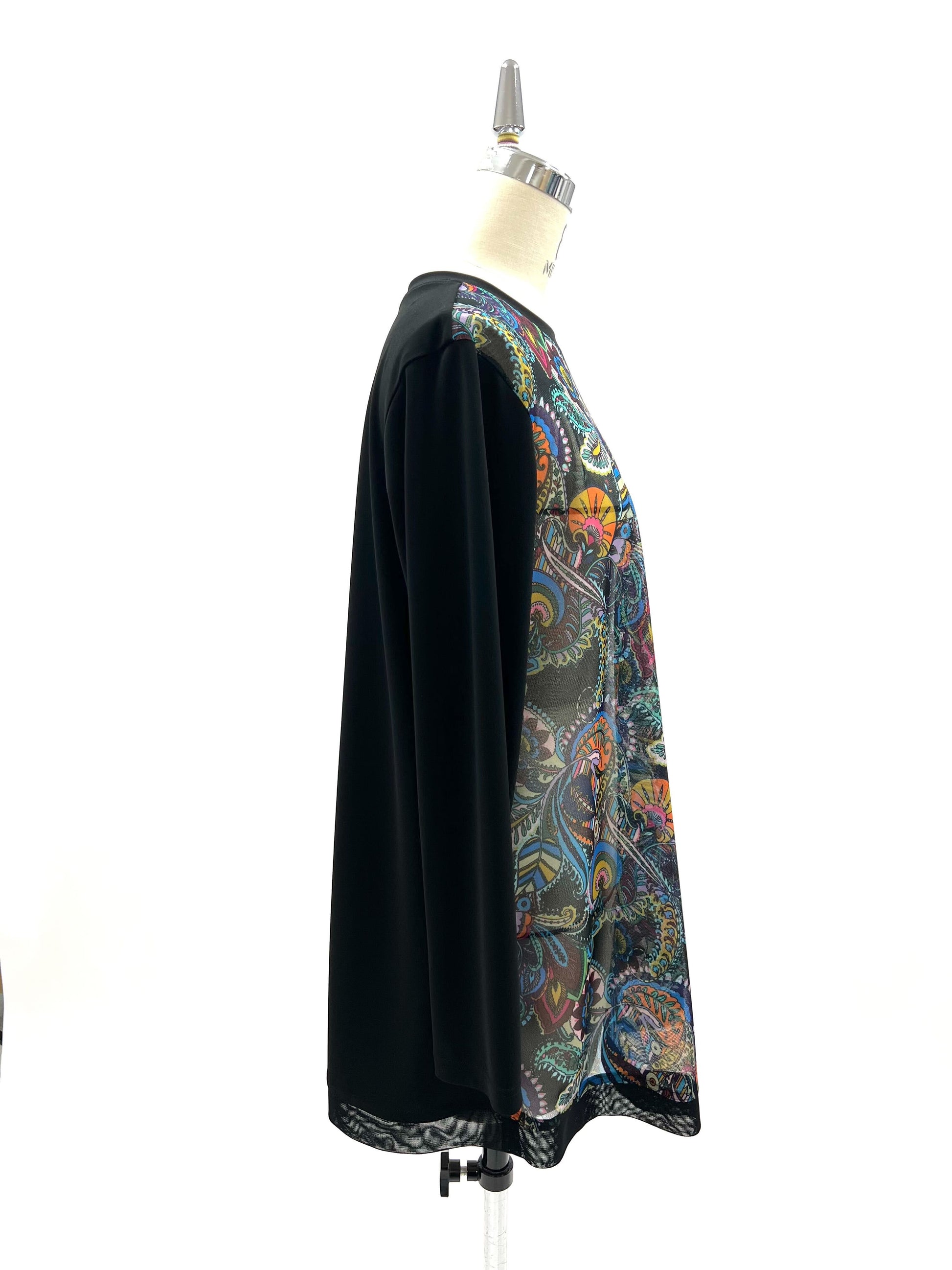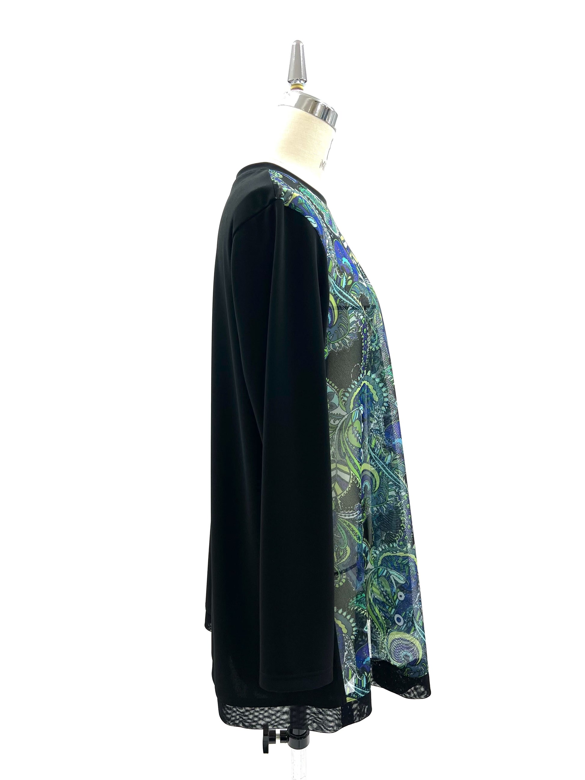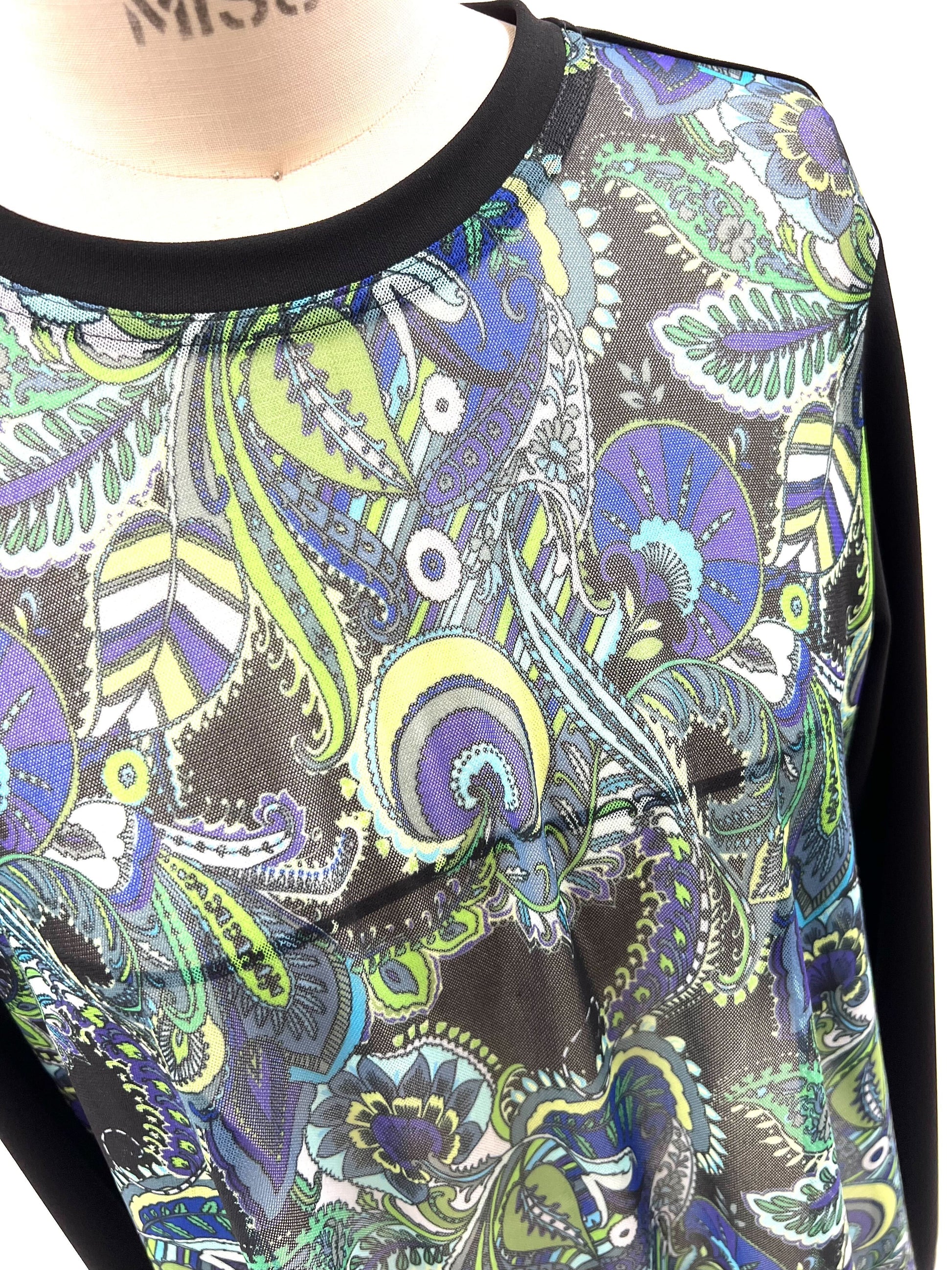 定番のポリエステルメッシュに独特な花とペイズリー柄で組み合わせたプリントメッシュを前身にあしらい、後身・袖はポリウレタンを配合した伸びのある着心地が良いスムースを採用し裾にはアクセントに無地のメッシュで切り替えてスッキリした印象にまとめてある丸首Tシャツです