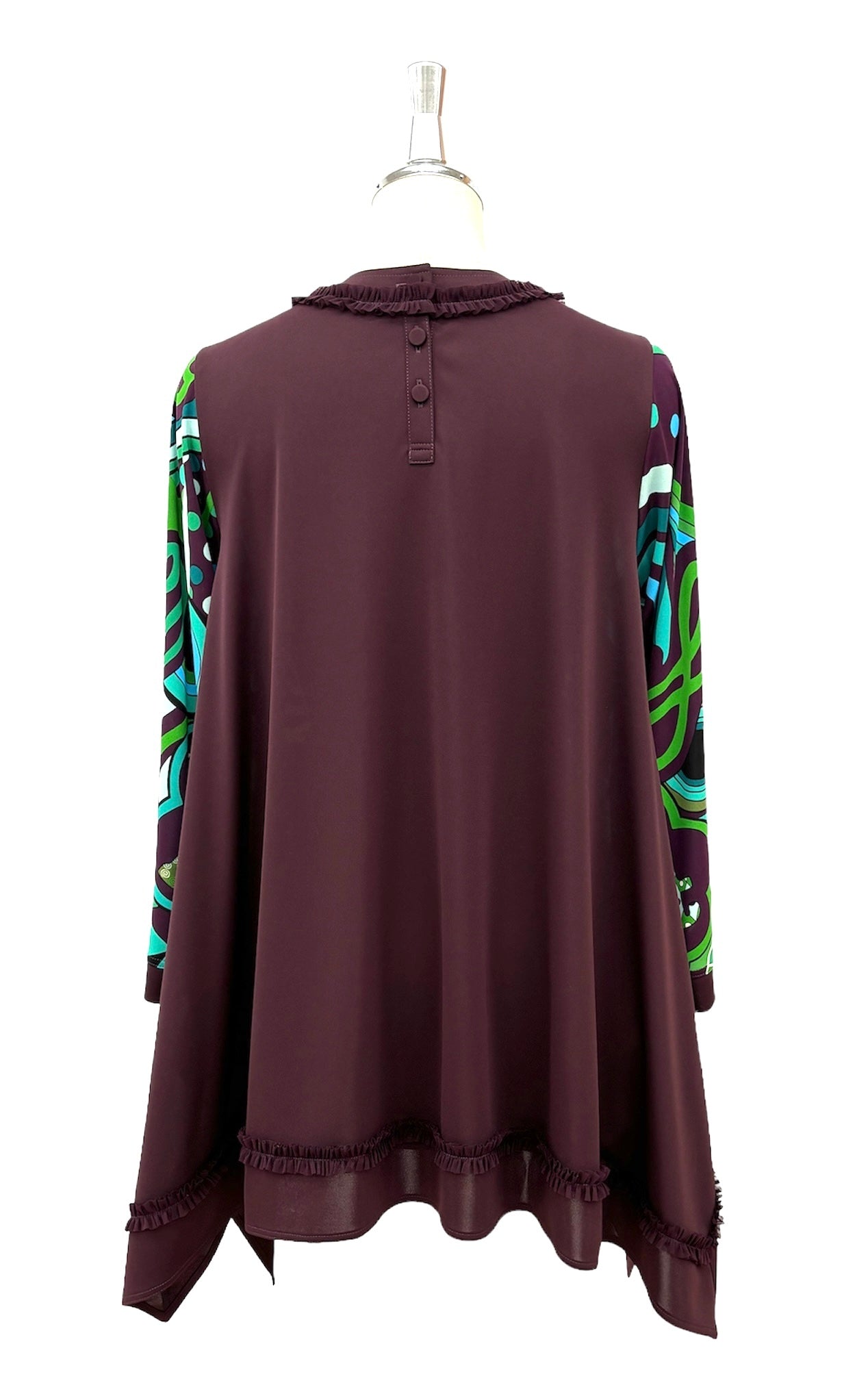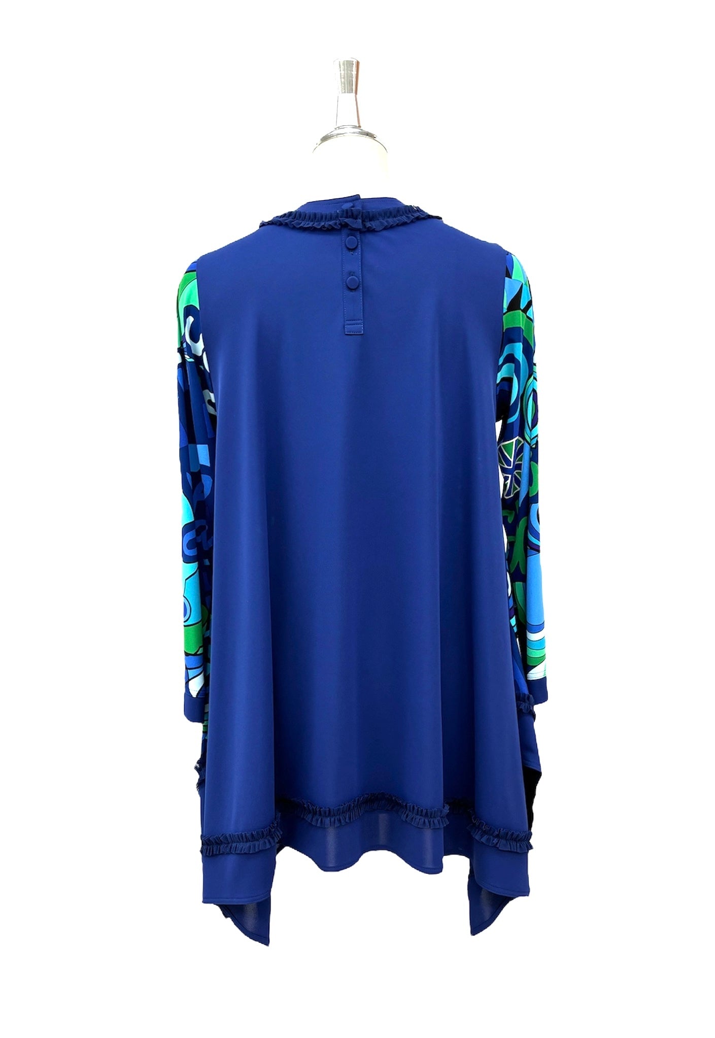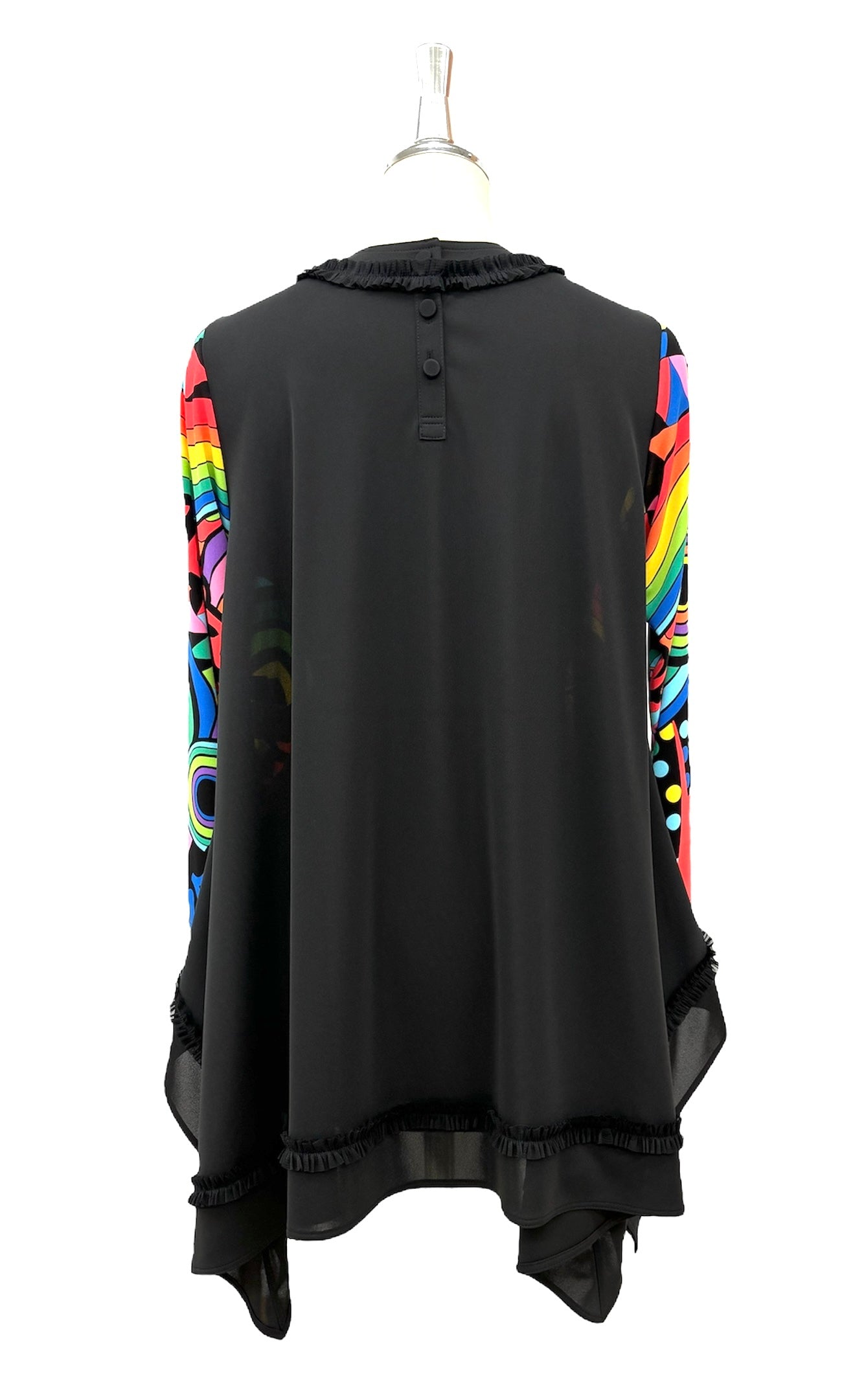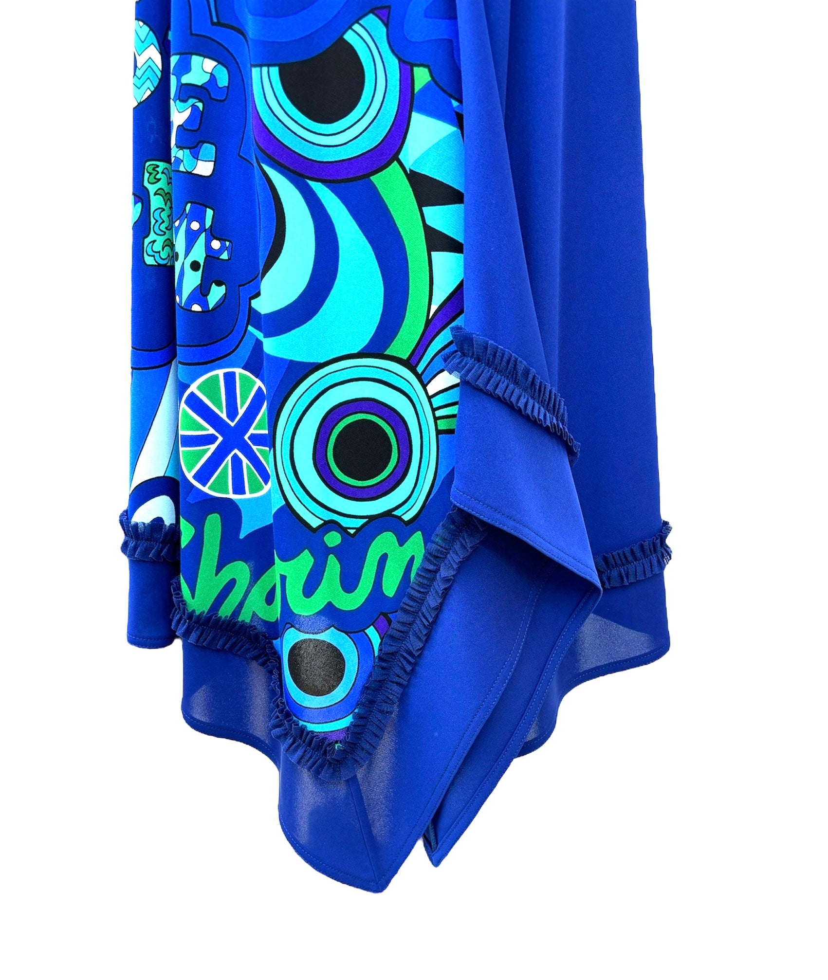 今回イメージのLONDONをPOPなイメージに仕上げたプリントを涼やかなトリアセテートの生地にのせた後短冊明きのAラインSH。衿と裾にミニフリルを付けて女性らしさもありながらPOPで明るく優雅な印象に仕上げられてます。※柄位置は写真と異なる場合もあります