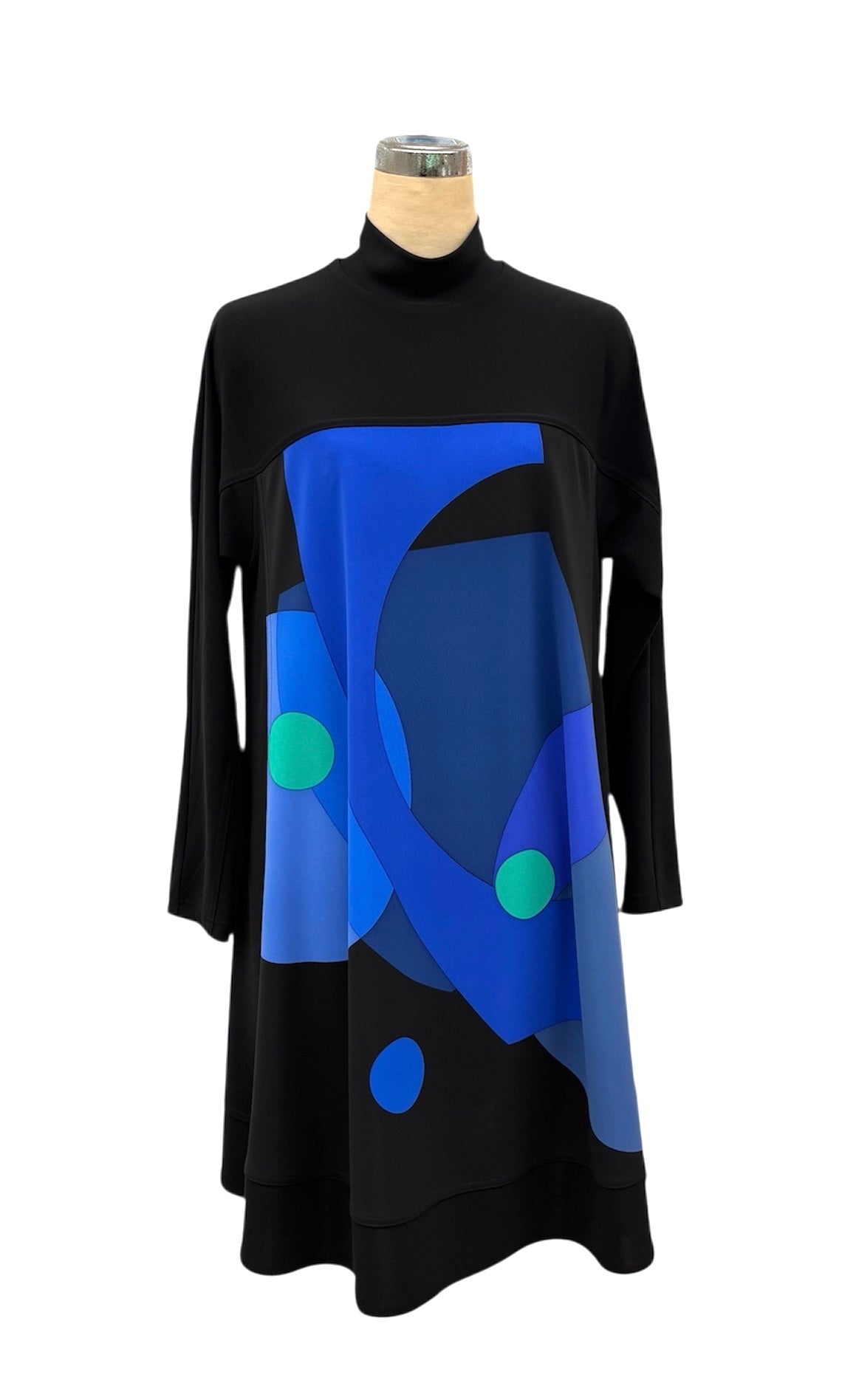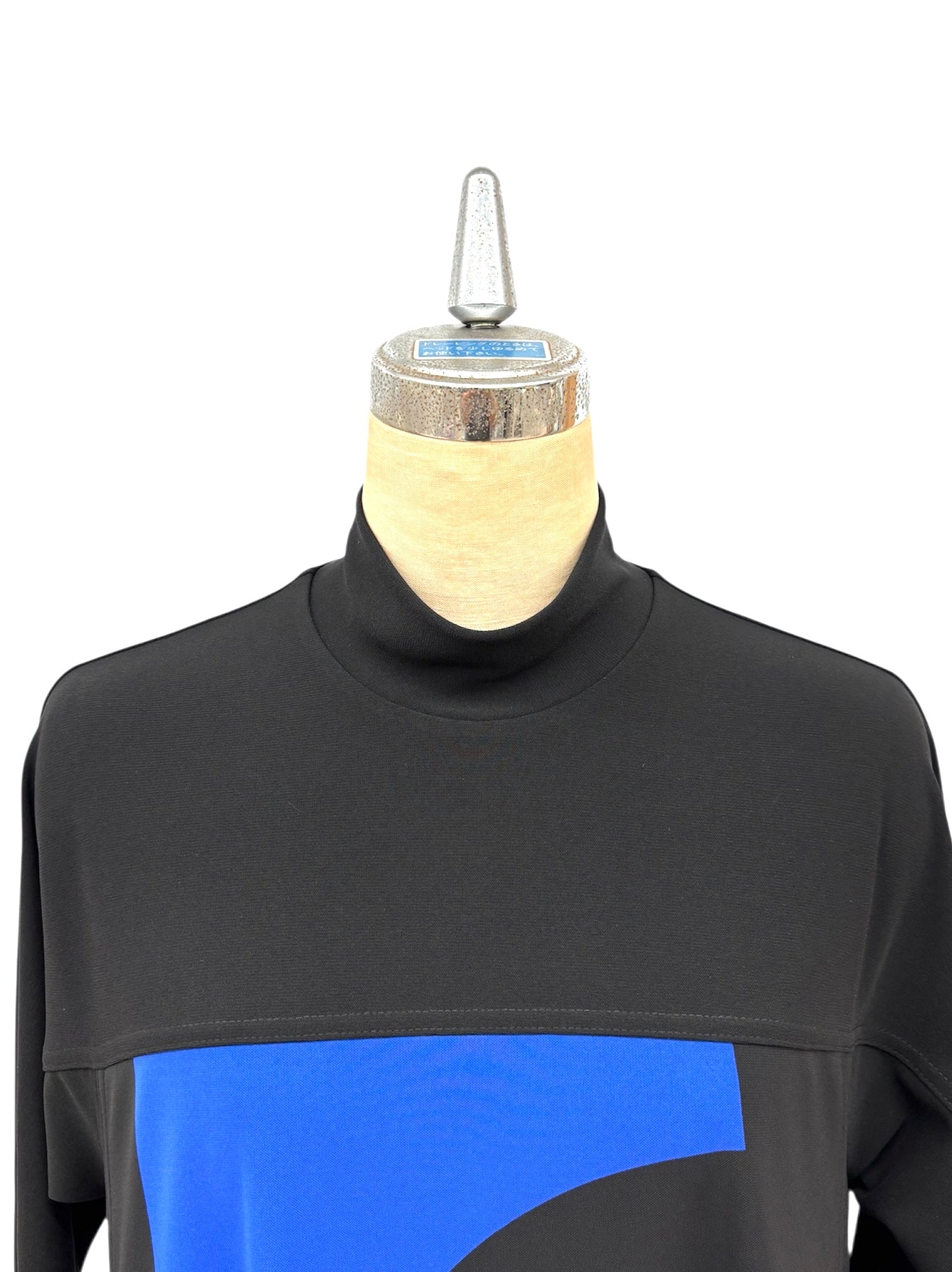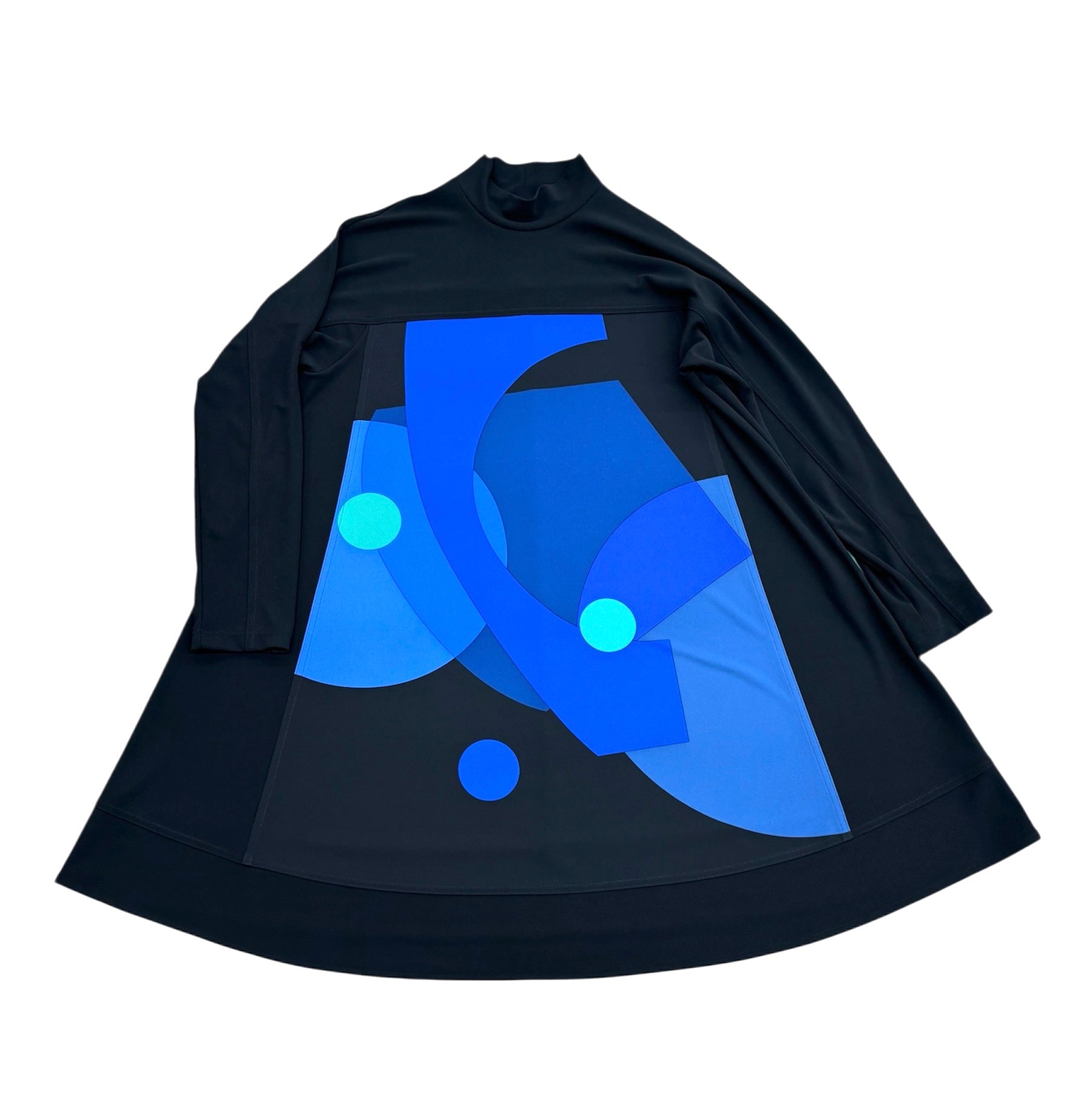 定番のベアスムースに色々な大きさの円を組み合わせた柄を使用したオーバーサイズプルオーバー ハイネック仕様で袖が身頃から続いているドルマンスリーブで着丈84cと長めでゆったししているシルエットに仕立ててあります
