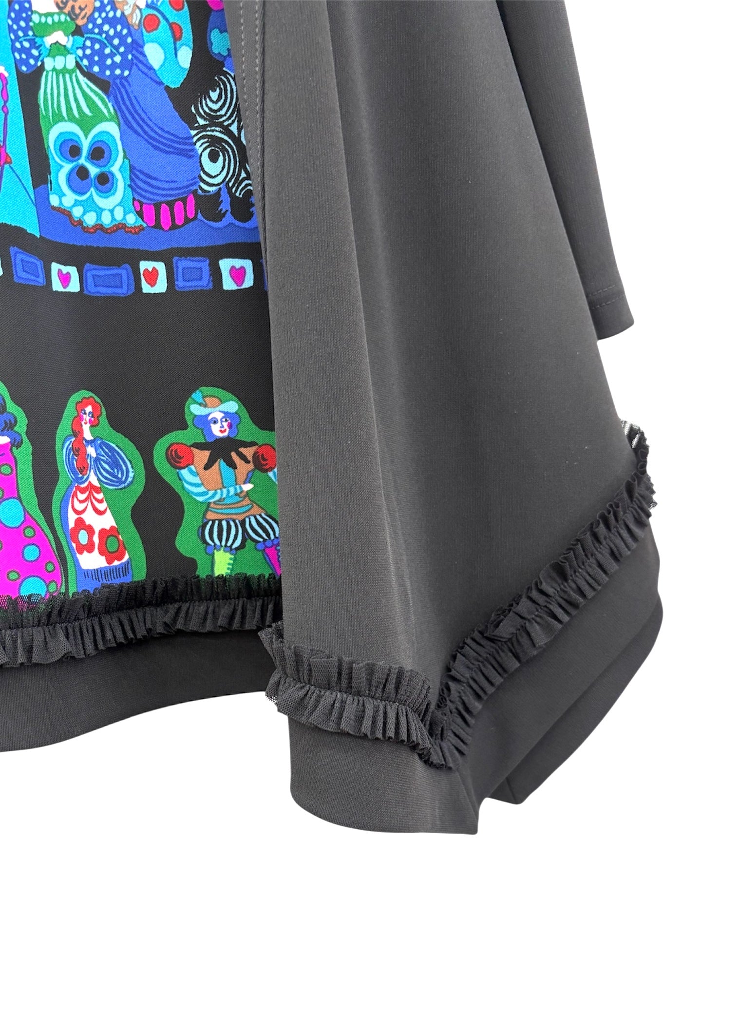 ロミオとジュリエットをTOKUKOらしいタッチで定番のベアスムースにプリントしたプルオーバー 前後に柄を使用し後ろからもTOKUKOとわかる製品。脇切り替えで無地を採用してるので柄で重く見えると言う事はなくスッキリとまとめ上げられてる製品です
