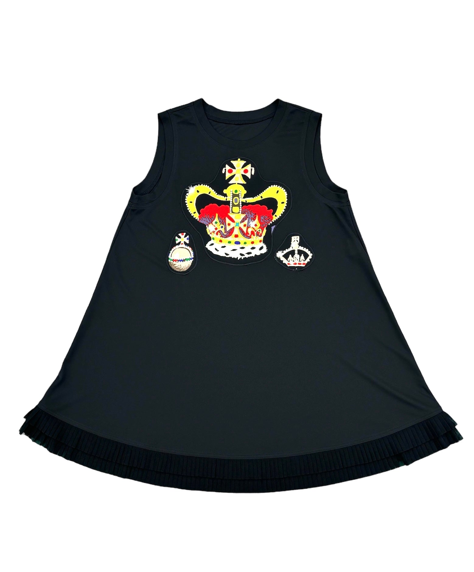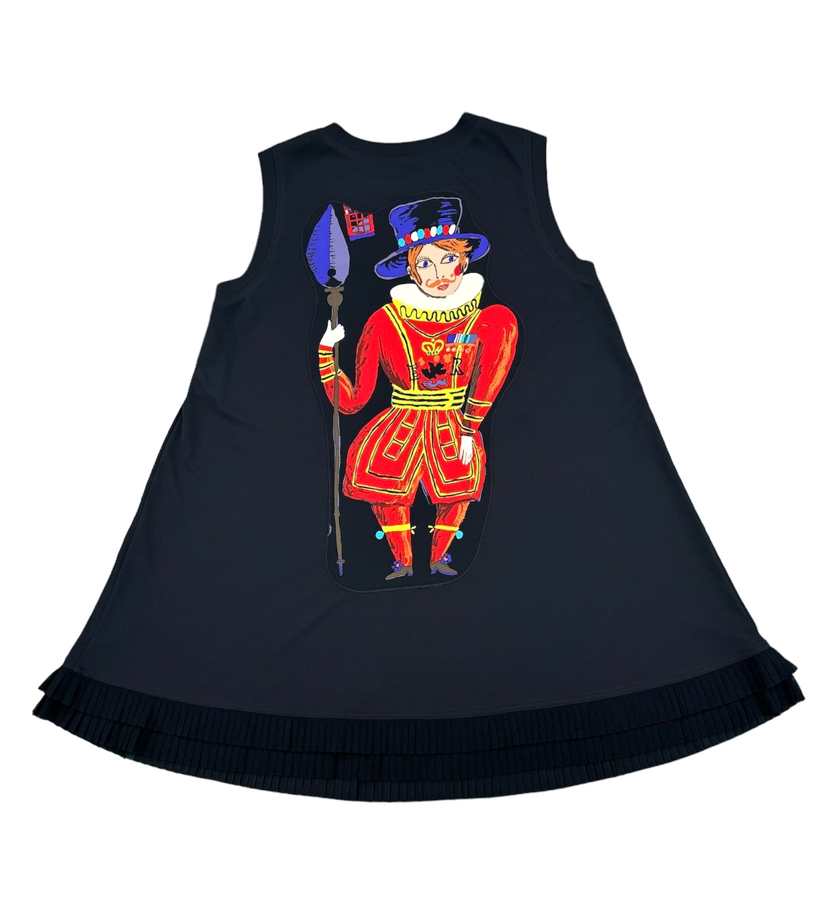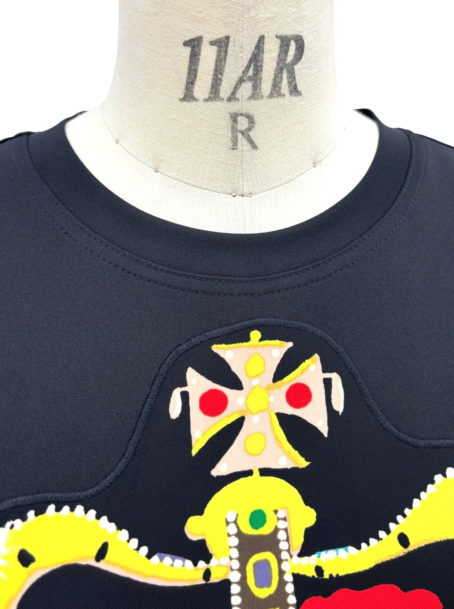 サラリとしたスムース生地にTOKUKOらしいアップリケをほどこし、裾にはプリーツ2段でフレアー感をだして女性らしさを強調してあります